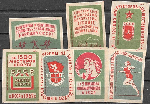 Набор спичечных этикеток. Спартакиада школьников БССР. 1961 год. 7 шт.