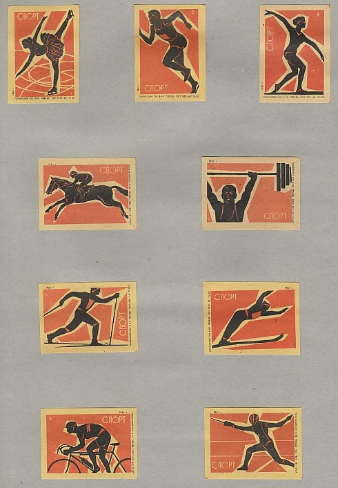 Набор спичечных этикеток. Спорт, 1961 год, 9 штук.