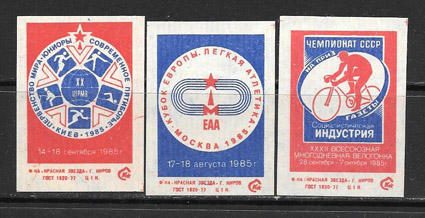 Набор спичечных этикеток. Спортивные чемпионаты 1985 г. 3 шт.