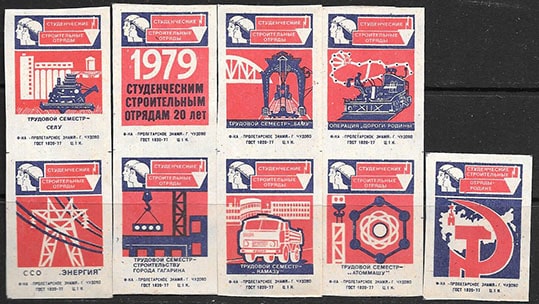 Набор спичечных этикеток. Студенческим строительным отрядам 20 лет! 9 шт. 1979 год