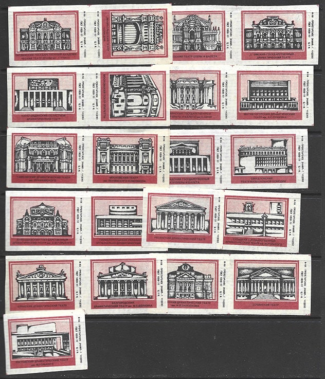 Набор спичечных этикеток. Театры. Фабрика Пролетарское знамя. 21 шт.