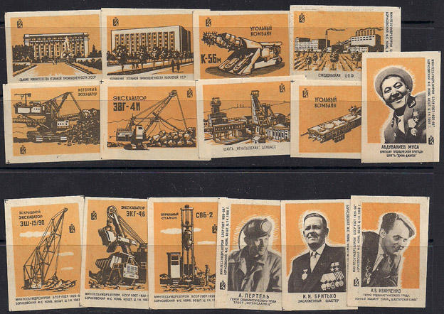 Набор спичечных этикеток. Угольная промышленность. 1968 г. 15 шт.