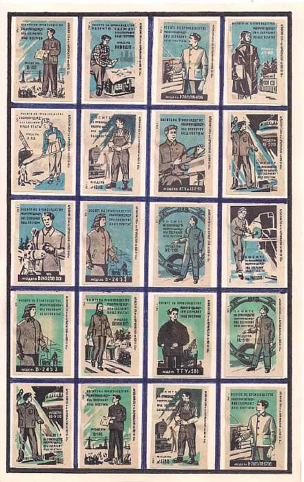 Набор спичечных этикеток. Украинская ССР 1961 год. Носите рабочую одежду (синие и зеленые). 20 штук НАКЛЕЕНЫ