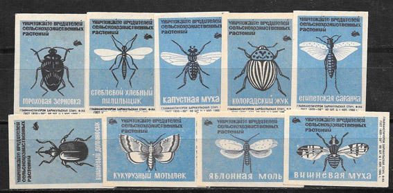 Набор спичечных этикеток. Вредители растений. 9 шт.. 1966 г НАКЛЕЕНЫ НА ЛИСТ