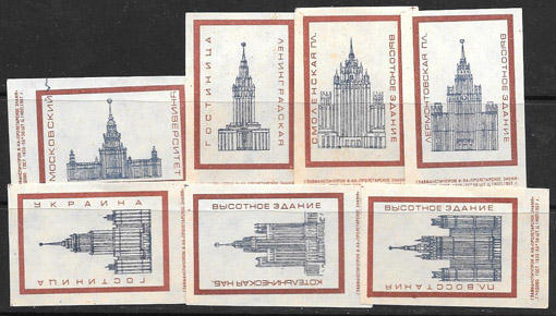 Набор спичечных этикеток. Высотные здания СССР. 7 шт.