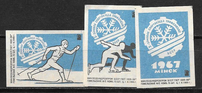 Набор спичечных этикеток. Зимняя спартакиада профсоюзов. Минск. 3 шт.