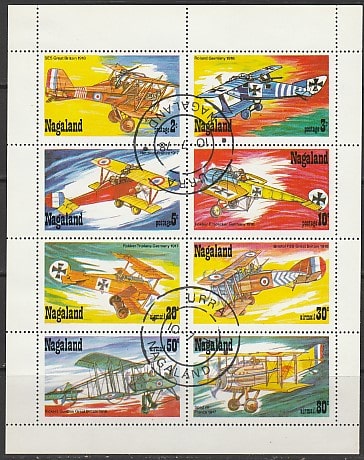 Нагаленд (Индия) 1978 год. Самолёты I Мировой войны, гашёный малый лист (непочтовые марки)