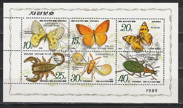 Насекомые, Бабочки, КНДР 1989 год, гашёный малый лист