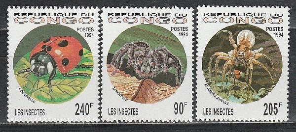 Насекомые, Пауки, Конго 1994 год, 3 марки