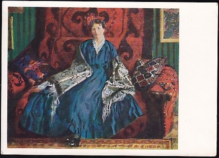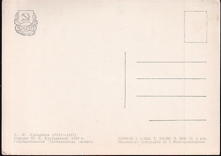 Немаркированная ПК "Б. М. Кустодиев. Портрет Ю.Е. Кустодиевой". Выпуск 1963 год