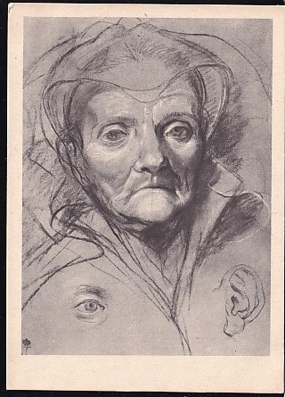 Немаркированная ПК "Голова старой женщины" Якоб Иорданс. Выпуск 30.10.1956 год