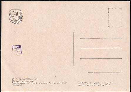 Немаркированная ПК "И.Е. Репин. Портрет неизвестной". Выпуск 1960 год