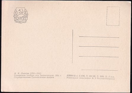 Немаркированная ПК "И.И. Левитан. Саввинская слобода под Звенигородом". Выпуск 1963 год