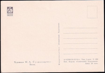 Немаркированная ПК "М. А. Суздальцев. Волга." Выпуск 30.03.1954 год