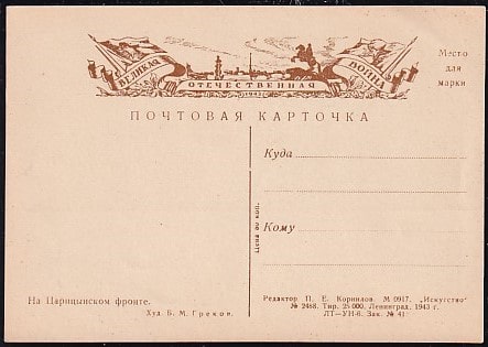 Немаркированная ПК На Царицынском фронте (худ. Б.М. Греков). Выпуск 1943 год