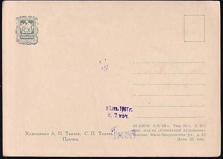 Немаркированная ПК "А. П. и С. П. Ткачев. Прачки." Выпуск 4.04.1958 год