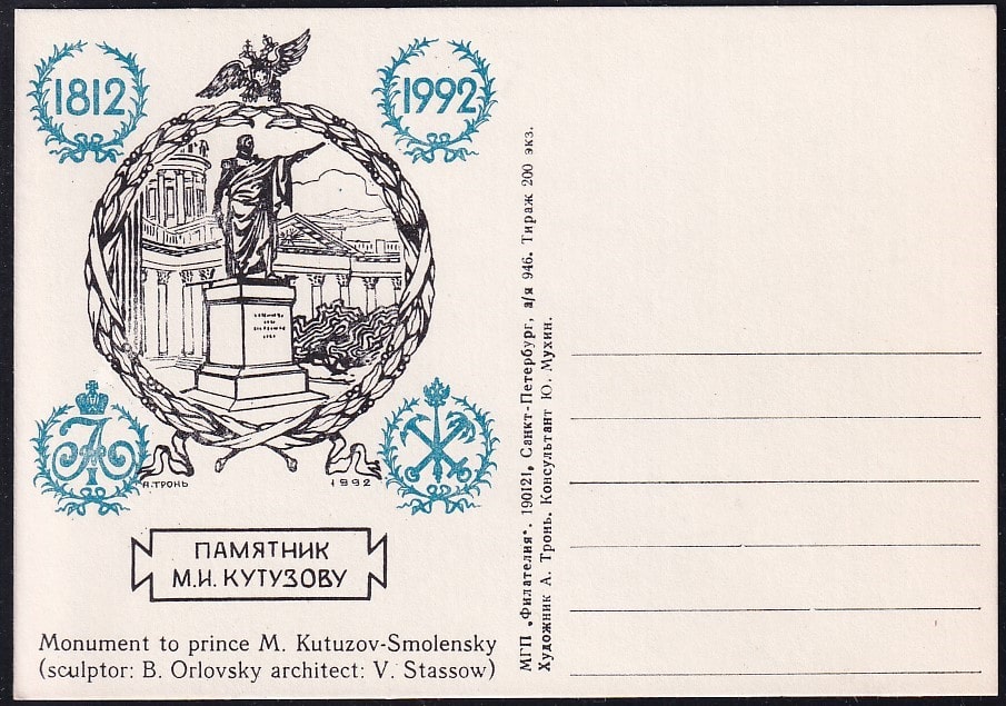 Немаркированная ПК. Памятник М.И. Кутузову, 1992 год