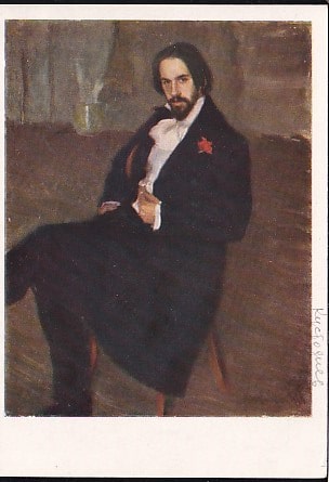 Немаркированная ПК "Портрет И. Я. Билибина" Б. М. Кустодиев. Выпуск 30.08.1957 год
