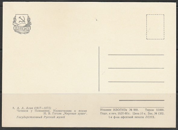Немаркированная ПК. Рисунок А.А. Агина "Чичиков у Плюшкина", ИЗОГИЗ, 1960 год.