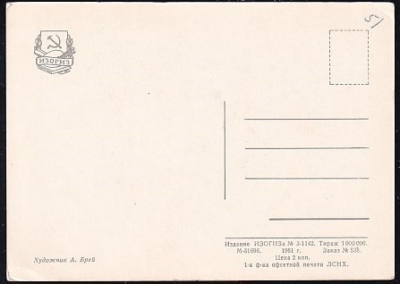 Немаркированная ПК С Новым годом! (худ. А. Брей). Выпуск 1961 год