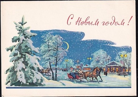 Немаркированная ПК С Новым годом! (худ. А. Горпенко). Выпуск 17.07.1961 год