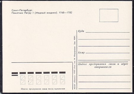 Немаркированная ПК Санкт-Петербург. Площадь декабристов. Памятник Петру (Медный всадник)