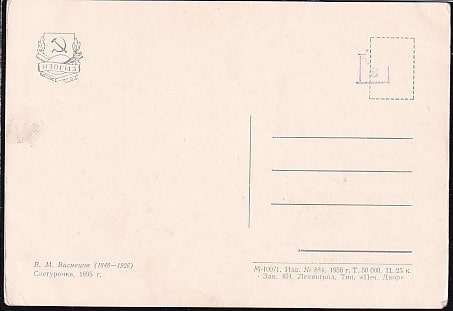 Немаркированная ПК "Снегурочка" В. М. Васнецов. Выпуск 1956 год