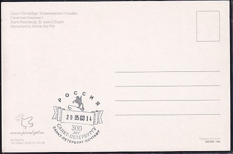 Немаркированная ПК со СГ 300 лет Санкт-Петербургу, 20.05.2003 год, Санкт-Петербург