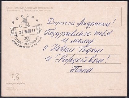Немаркированная ПК со СГ 300 лет Санкт-Петербургу (Лавра), 20.05.2003 год, Санкт-Петербург, подписана