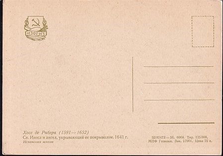 Немаркированная ПК "Св. Инеса и ангел" Хосе де Рибера. Выпуск 1956 год
