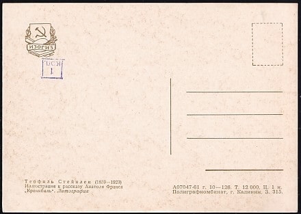 Немаркированная ПК "Т. Стейнлен. Иллюстрация к рассказу А. Франса "Кренкбиль". Выпуск 1961 год