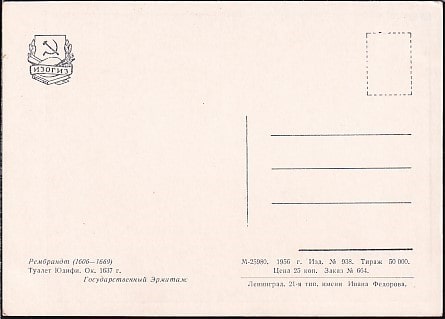 Немаркированная ПК "Туалет Юдифи" Рембрандт. Выпуск 1956 год