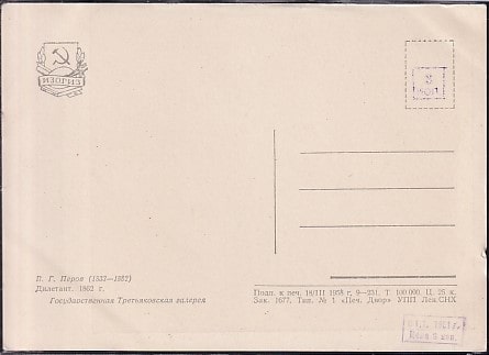 Немаркированная ПК "В. Г. Перов. Дилетант". Выпуск 18.03.1958 год