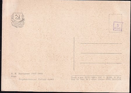 Немаркированная ПК "В. В. Верещагин. Море". Выпуск 22.03.1960 год