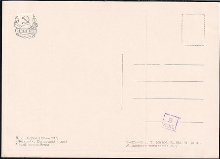 Немаркированная ПК В.А. Серов. "Летучий" Орловский рысак, 1959 год