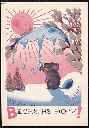 Немаркированная ПК Весна на носу! (худ. С. Бялковская) Выпуск 1958 год
