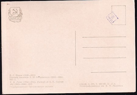 Немаркированная ПК В.Г. Петров. Портрет А.Н. Островского. Выпуск 1956 год