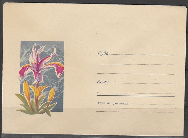 Немаркированный конверт. Цветы. Ирисы, 11.06.1969 год.