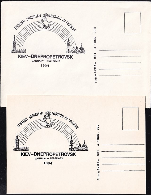 Немаркированный конверт и ПК "Английская христианская миссия в Украине", 1994 год