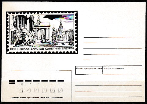 Немаркированный конверт. Союз филателистов Санкт-Петербурга, 1992 год.