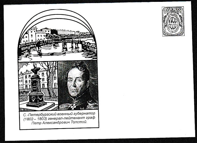Немаркированный конверт. Военный губернатор СПб, генерал, граф Пётр Александрович Толстой, 2003 год.