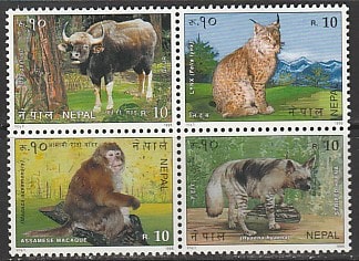 Непал 1995 год. Международная филвыставка в Сингапуре. Охраняемые животные, квартблок.