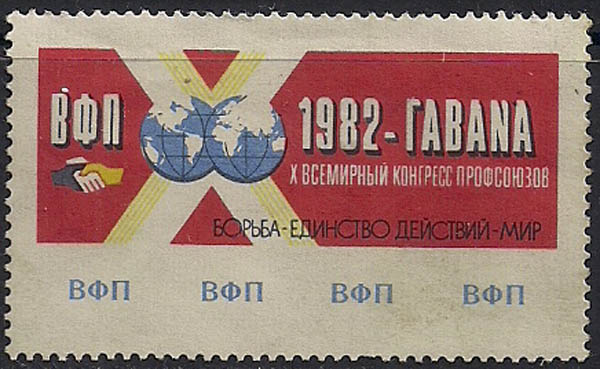 Непочтовая марка. 10-й Всемирный Конгресс профсоюзов в Гаване. 1982 год