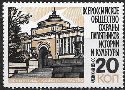 Непочтовая марка Членский взнос 20 коп, Ленинград. Адмиралтейство. МЯТАЯ