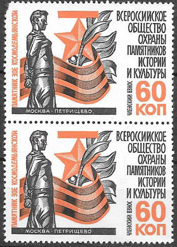 Непочтовая марка Членский взнос 60 коп. Москва. Петрищево. Памятник Зое Космодемьянской. Сцепка марок