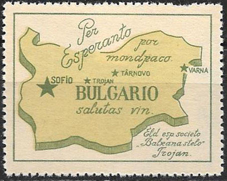 Непочтовая марка. Эсперанто. Карта Болгарии.