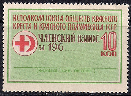 Непочтовая марка. Исполком Союза Красного Креста и Красного Полумесяца. Членский взнос 10 к.196.. ,,, Вступайте