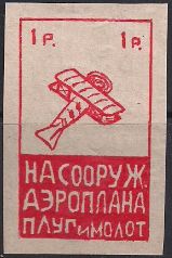 Непочтовая марка ОДВФ "На сооружение аэроплана "Плуг и Молот" 1 рубль (красная). Репринт