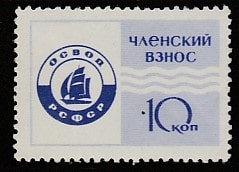 Непочтовая марка. ОСВОД РСФСР, членский взнос 10 коп.