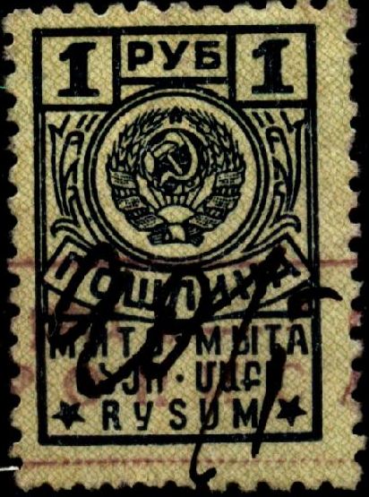 Непочтовая марка. Пошлина 1 рубль, гашение ручкой